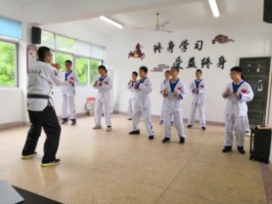 紧接着,由清江镇中学的余阿军老师给大家展示了一堂别开生面的拓展课——跆拳道腾空前踢技术方法。余老师从热身操开始课堂导入,层层落实教学目标与重难点,并对学生的技术动作进行纠错时,讲解详细到位,展现出了较强课堂驾驭能力和扎实的专业基本功。余老师采用演示法等有效的教学手段和合作学练的学习方法,让学生逐渐掌握跆拳道腾空前踢技术的方法要领。整节课活而不乱,课堂教学设计新颖,课堂内容充分体现出体育学科特色。