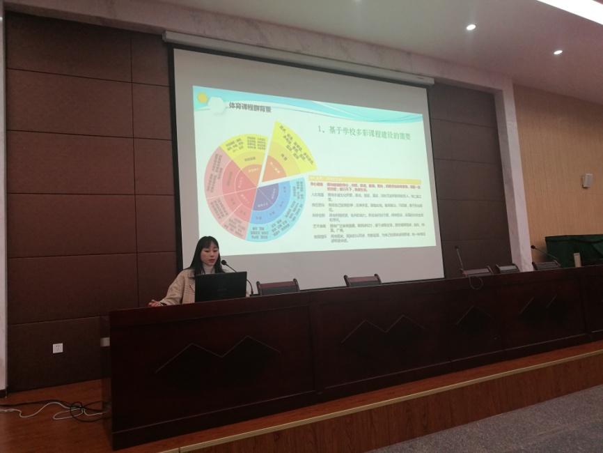 紧接着,丹霞路小学的钱娃老师作了《让每一个孩子,都与众不同——多维体育课程群探索和实践》专题讲座,她从课程背景、课程目标、课程内容、课程实施、课程成效与思考等五个方面介绍学校体育课程群的多维开发与推进。学校在统筹3+1+X+Y环境下,不断创新教学手段丰富教学形式,努力开发教材,实现教材校本化。让体育项目优化,多维联动,实现学科渗透融合,助推学生体质健康。丹小体育梦,让每个孩子都健康、阳光、与众不同,多彩丹霞,正焕发出新的活动和风采。