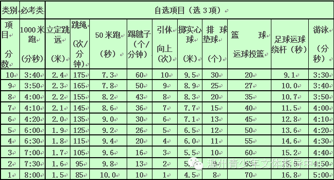 2016年温州市初中毕业生体育考试电子测试成绩评定规则